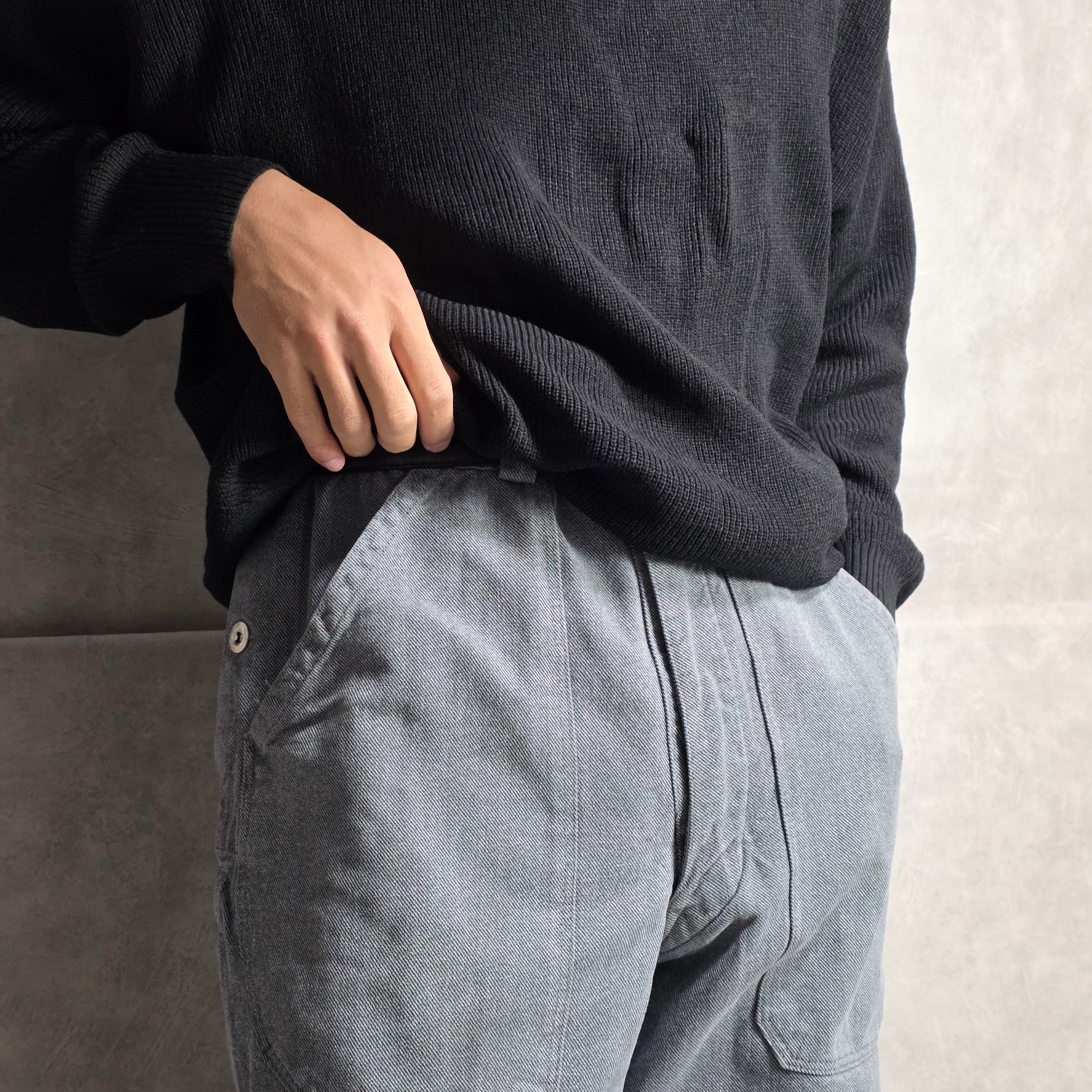 脇貫通ポケットがあり、通年着用できるデニムパンツとなっております