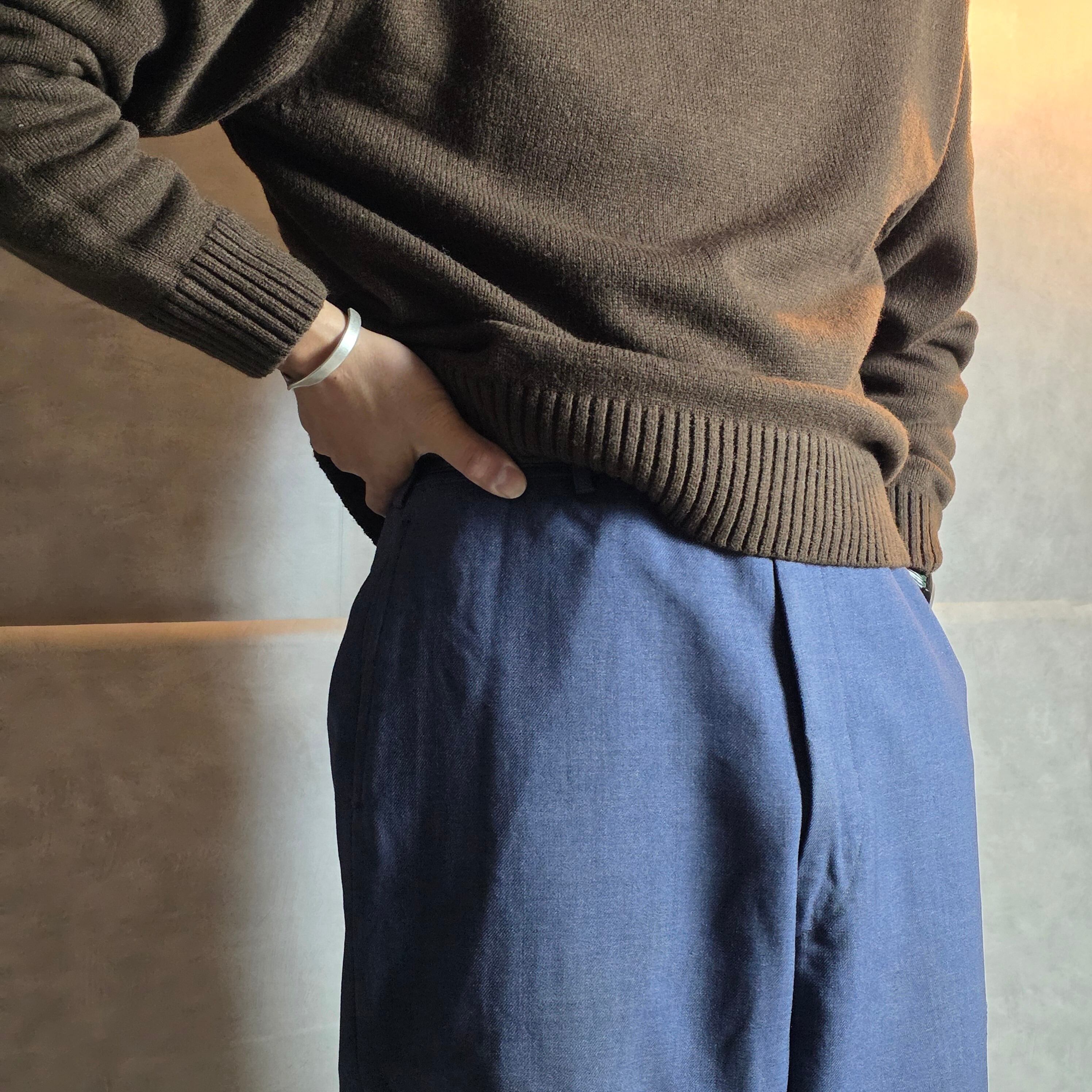 ネイビーとは少し違う、ブルーグレーの絶妙なカラーはいつものコーディネートに少し変化をさせてくれる1本。