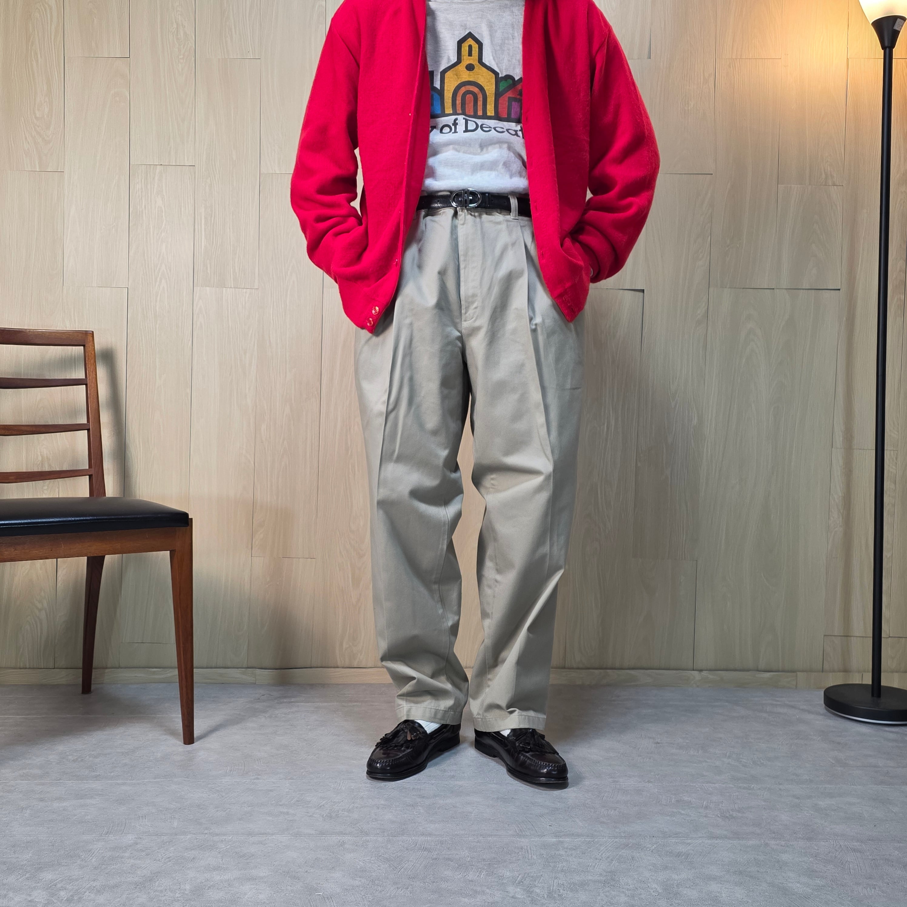 1990s VANHEUSEN ヴァンヒューゼン ツータック チノトラウザーズ チノパン W36 ボトムス パンツ メンズ 古着
