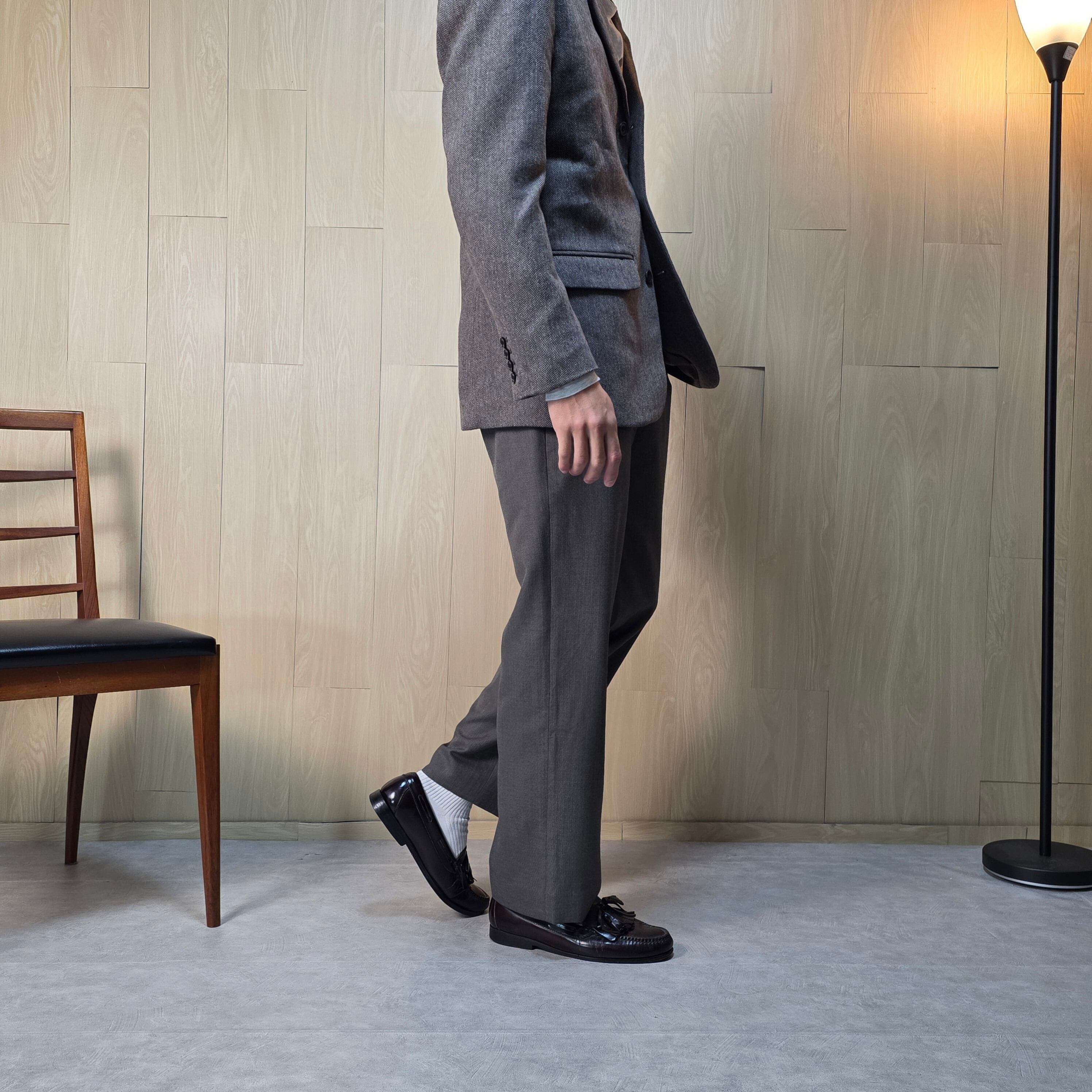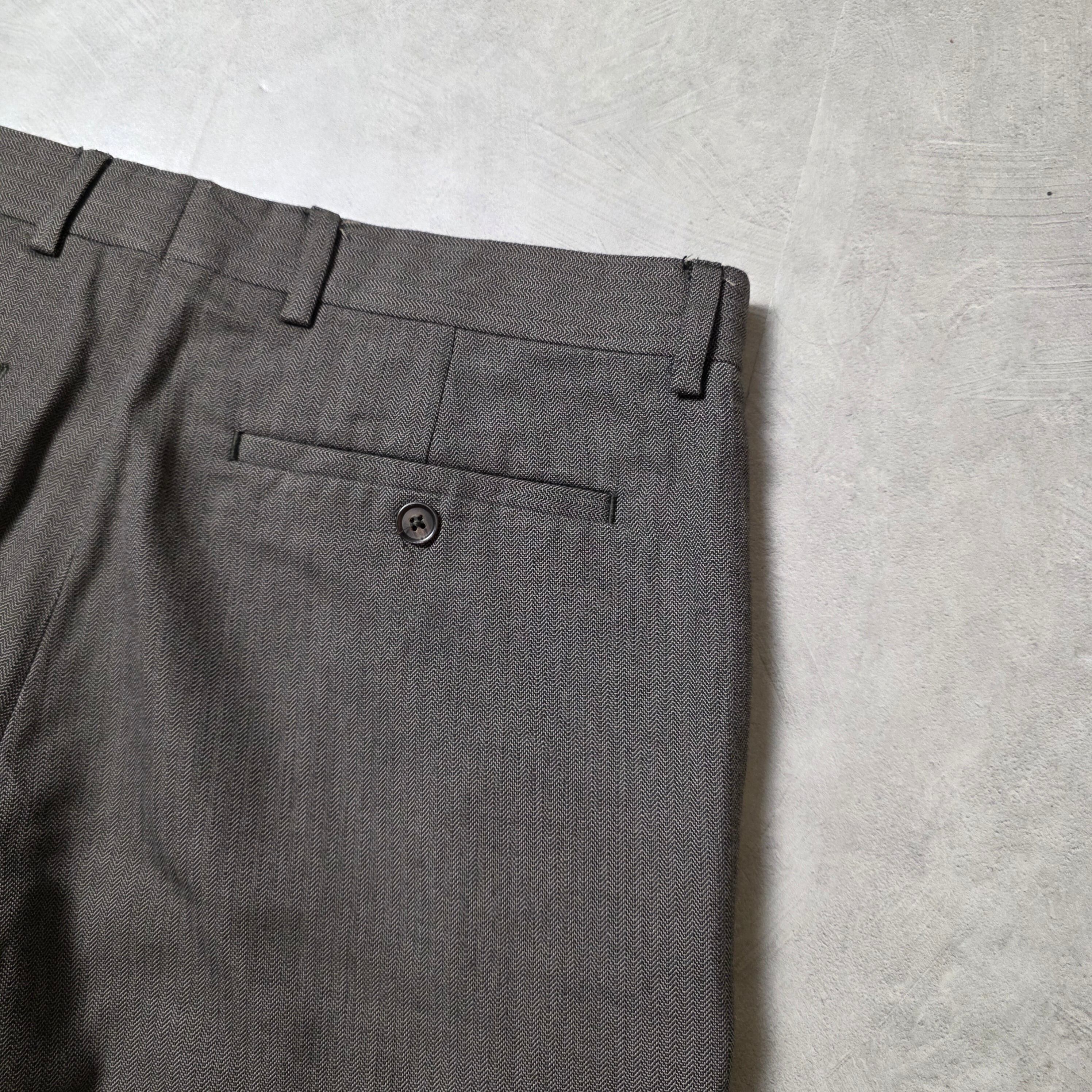 ヘリンボーンとも言えない絶妙な織り目が素晴らしいスラックス。
