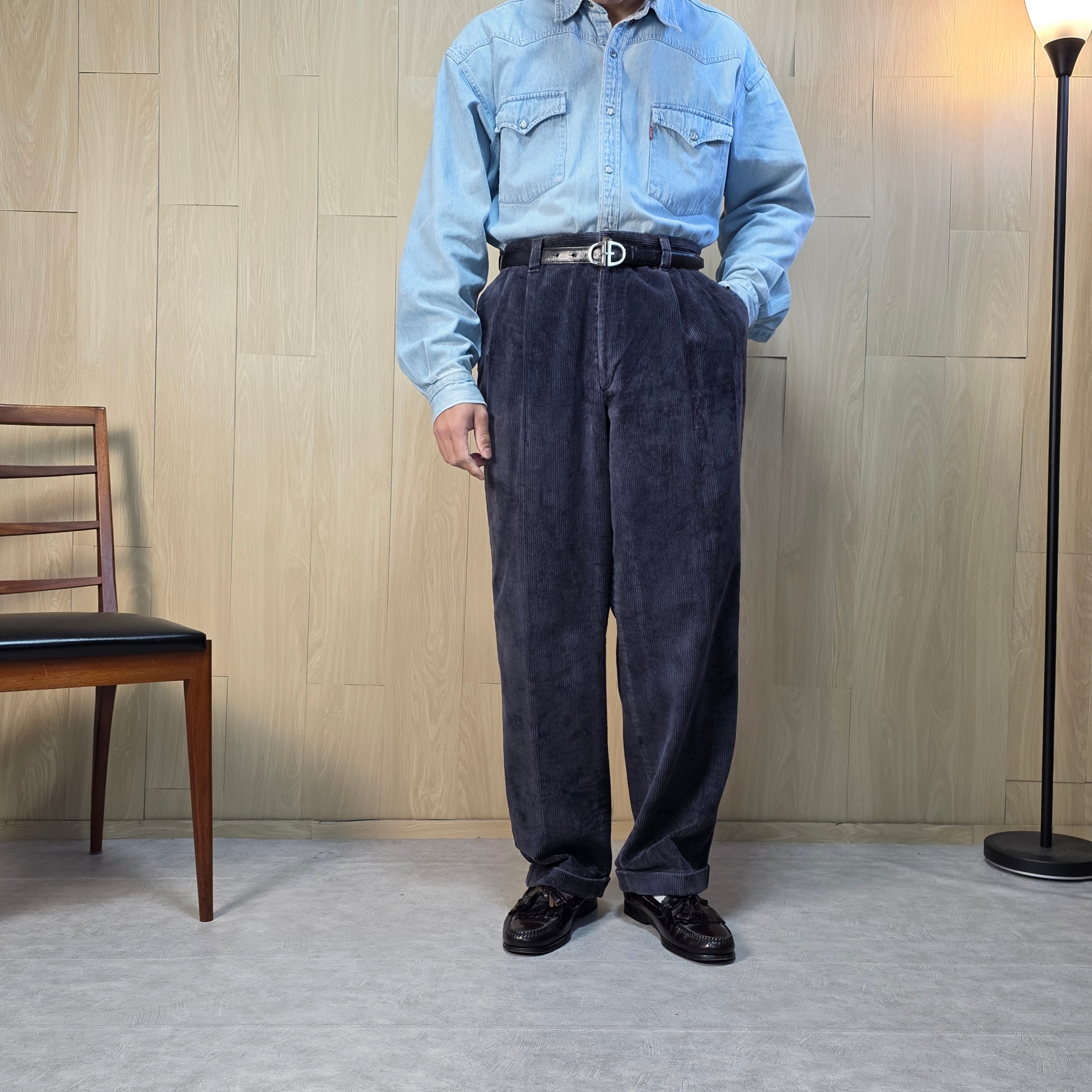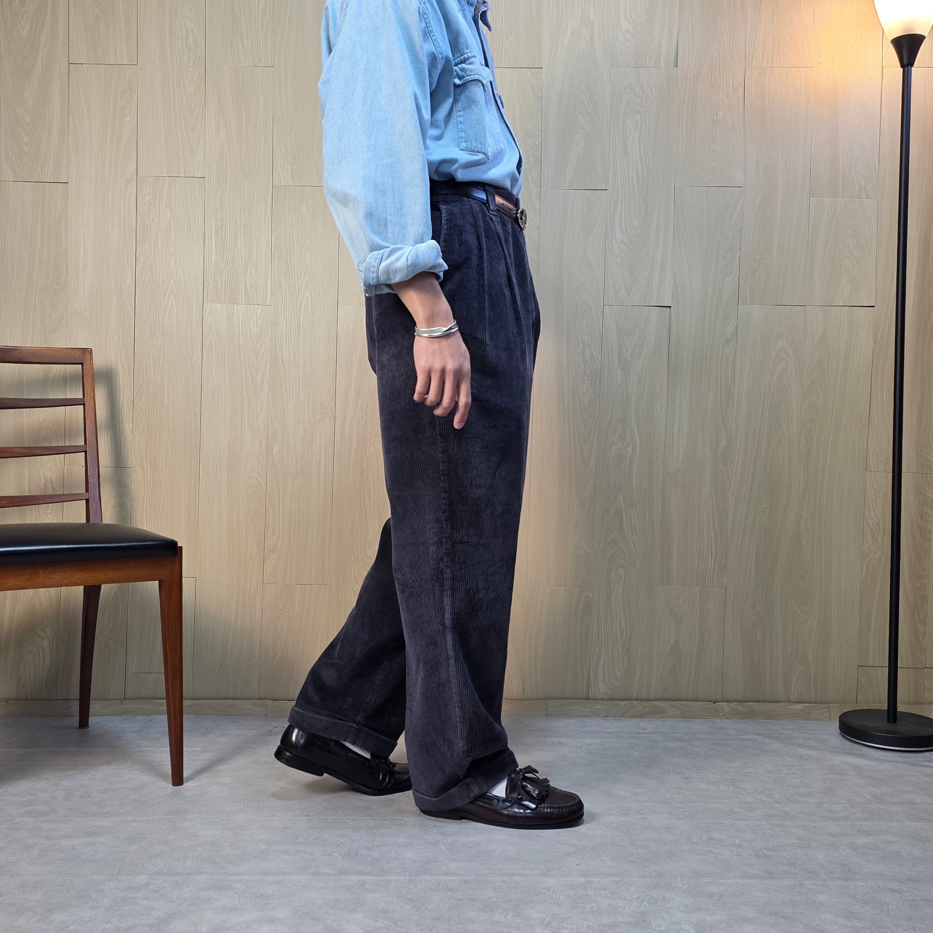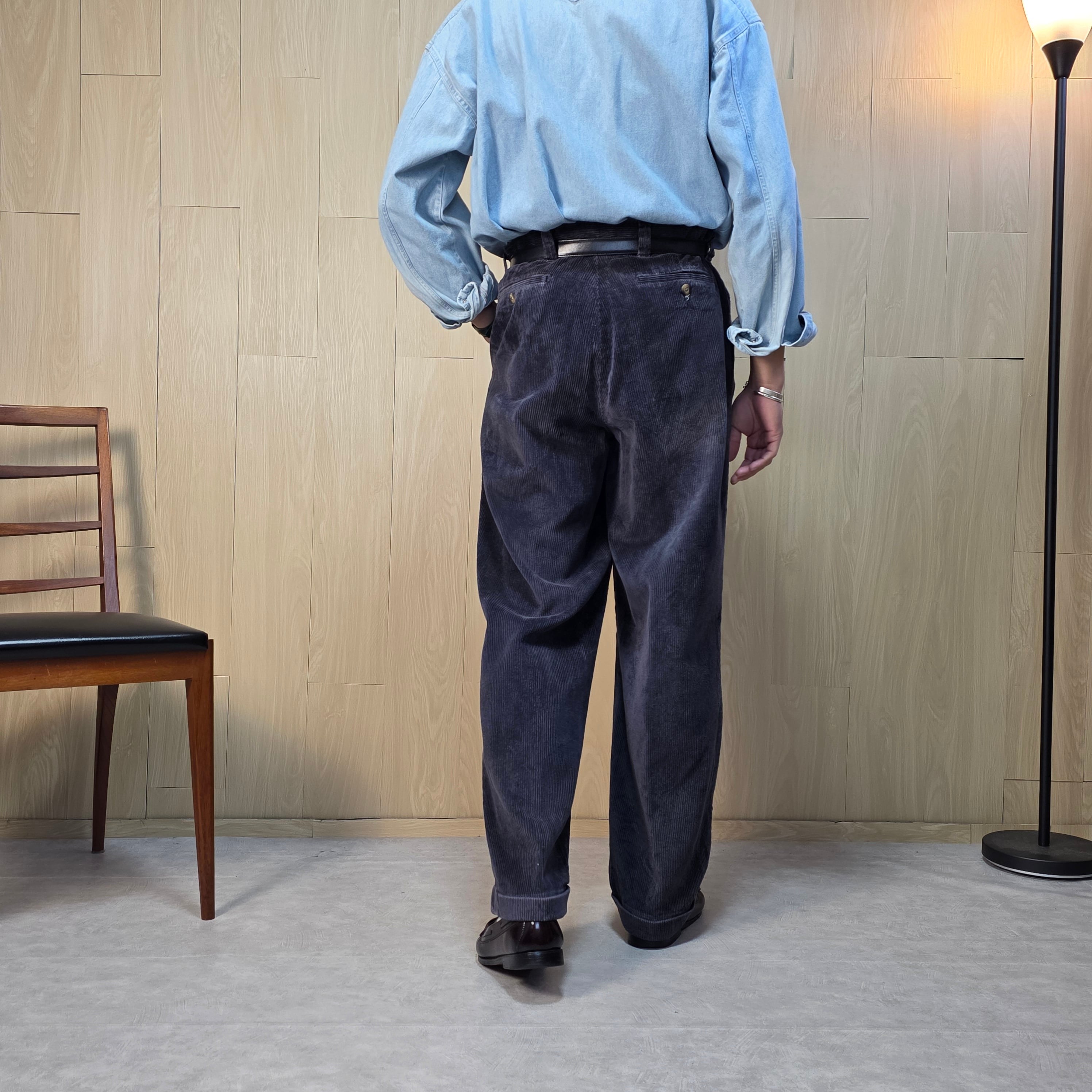 1990s used 太畝コーデュロイ ツータック ワイドパンツ コーズトラウザーズ W36 パンツ ボトムス メンズ 古着