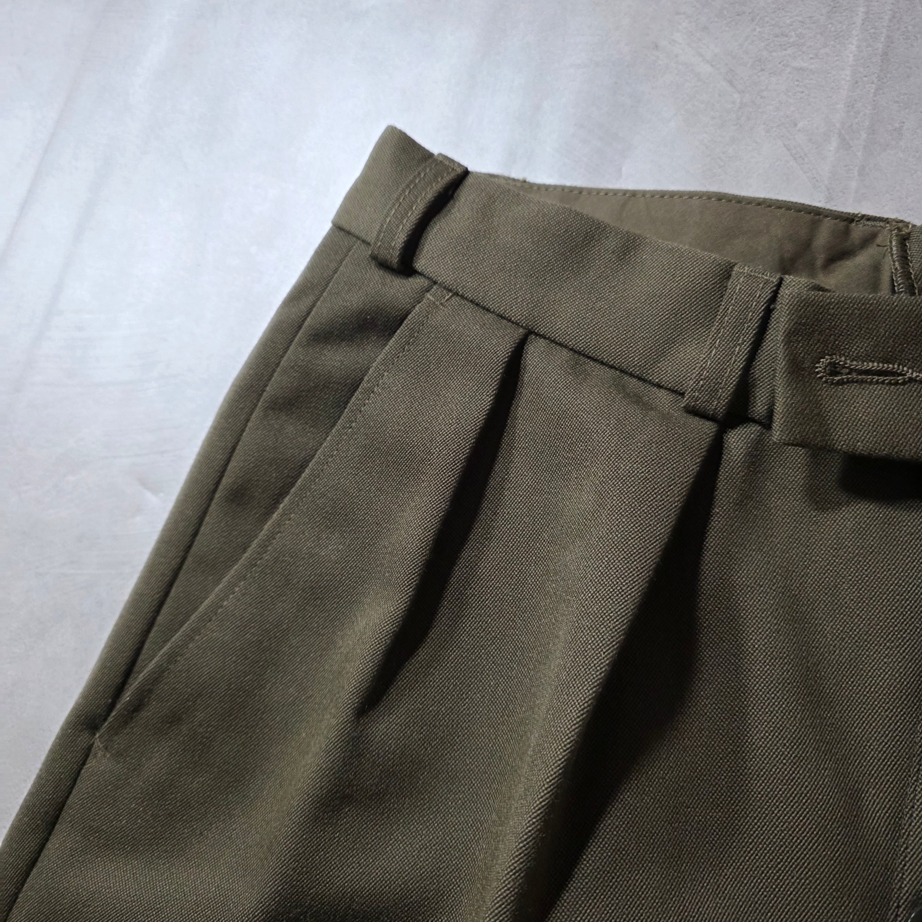 ミリタリーならではの内向きツータック。