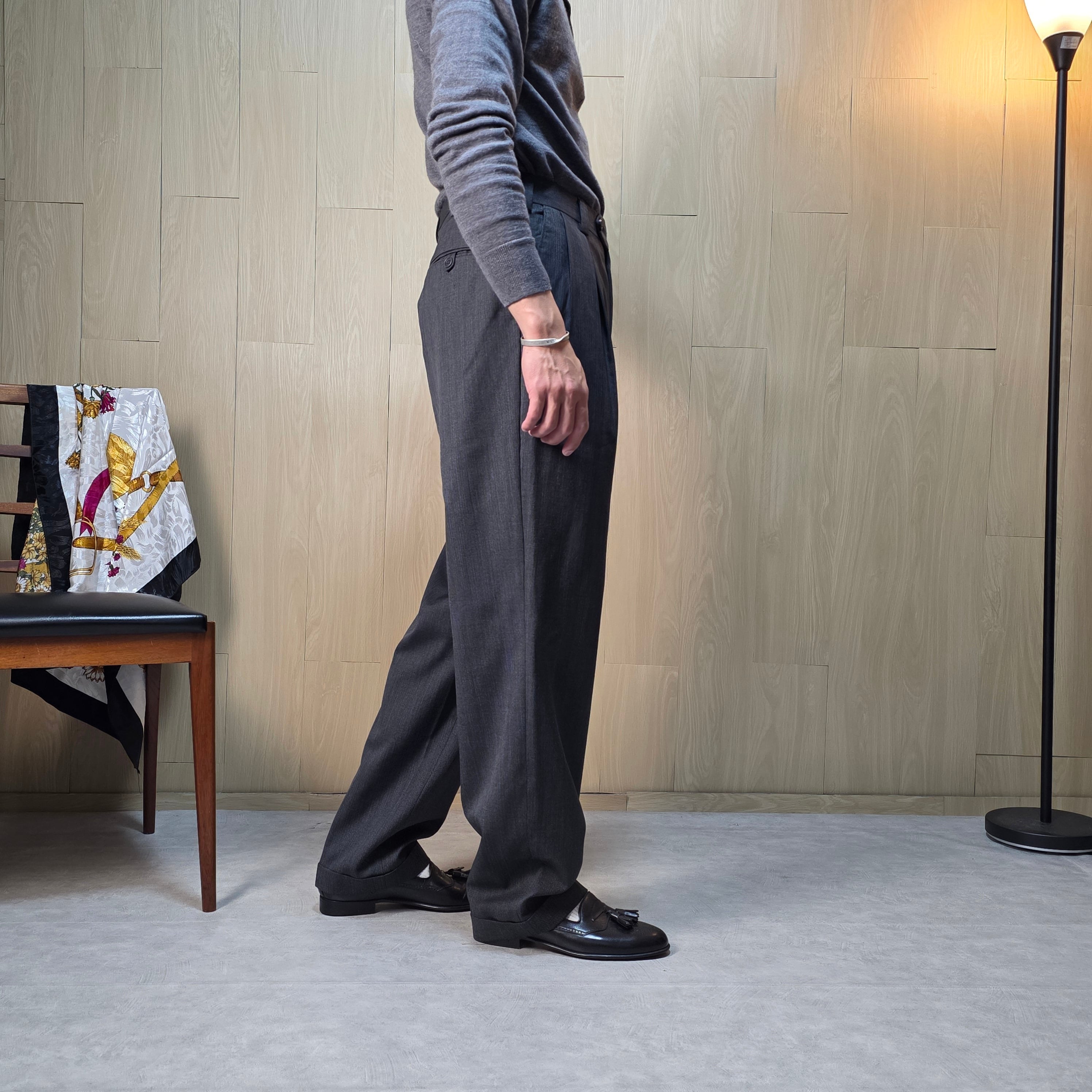 プリーツタックの実質3タック程の、ゆとりあるディテールが魅力的なスラックス。