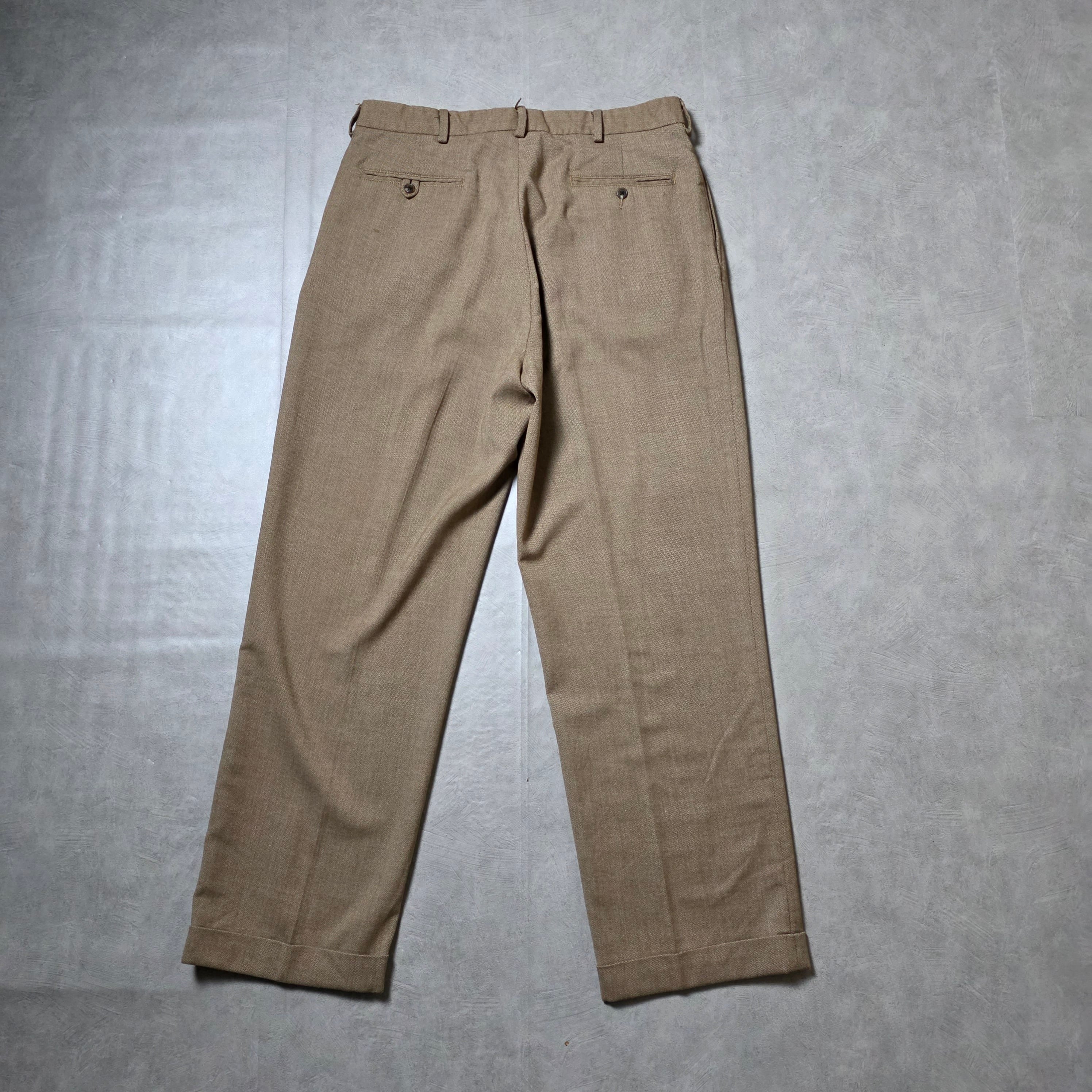 ライトブラウンの、柔らかく温かみのある色味にヘリンボーン織りの生地が素晴らしい1本。