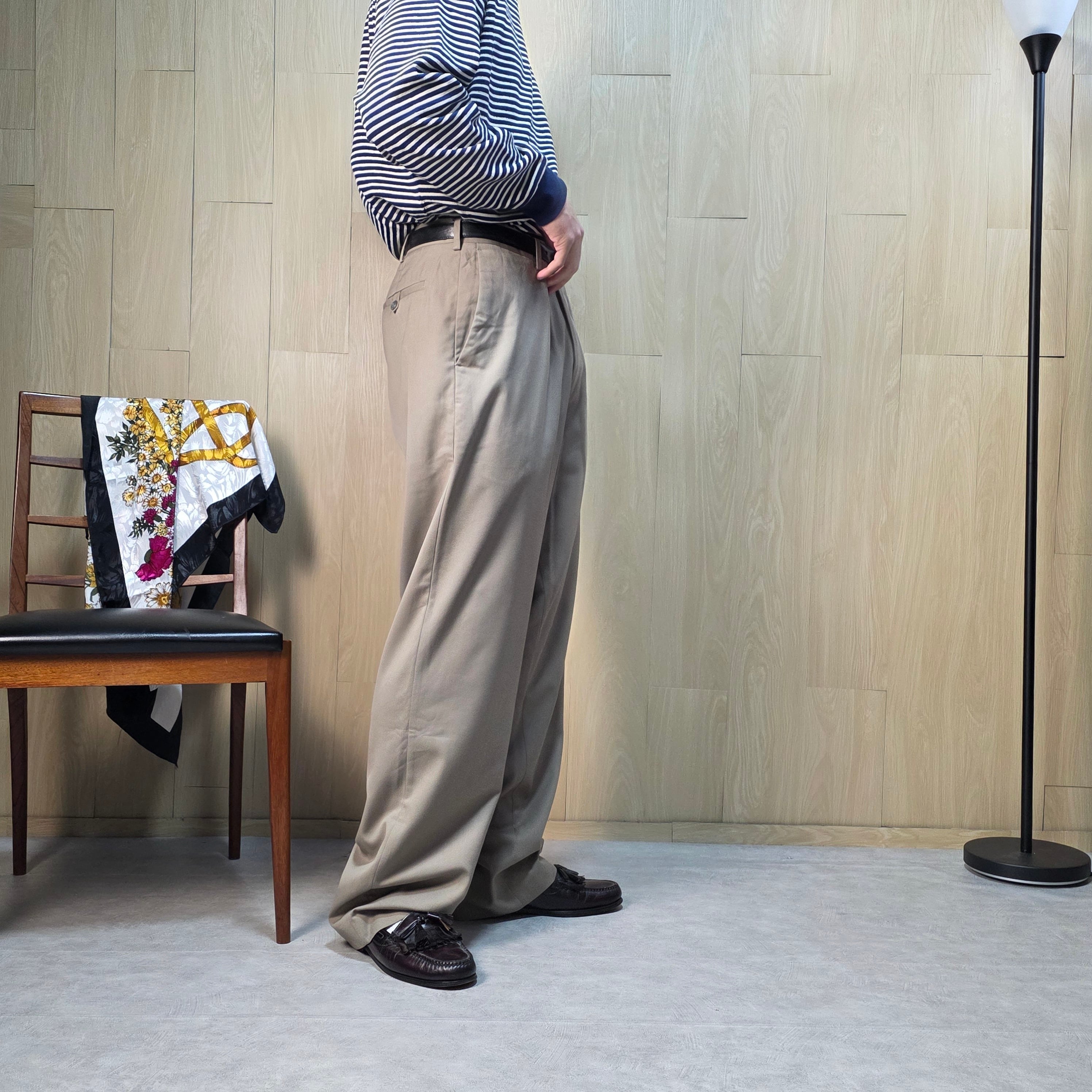 よく見るとひし形模様があり、シンプルなベージュスラックスであり、でもそうではない拘りがペリーエリスらしいところです。