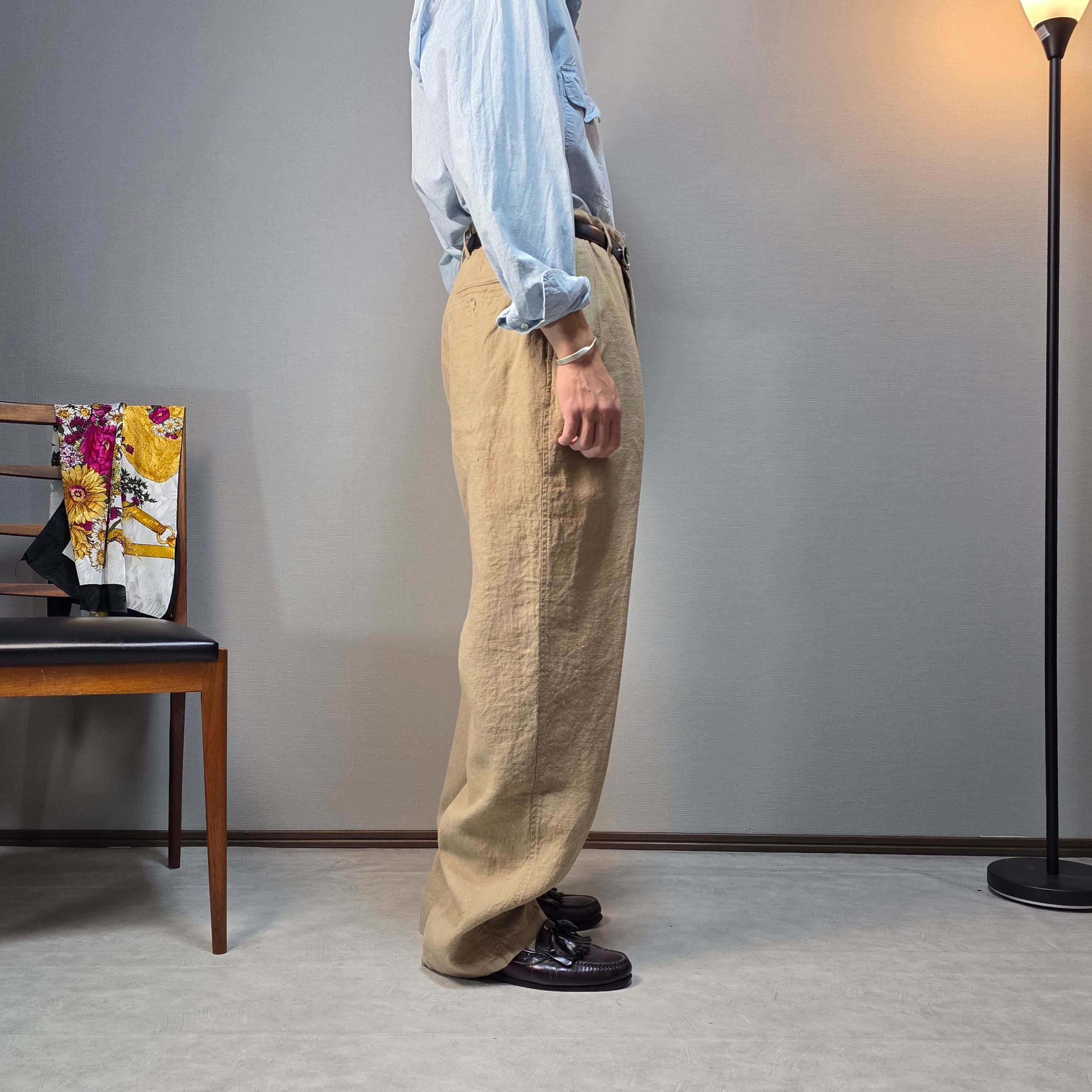 1990s Vintage Polo By Ralph Lauren 2tuck Linen Trousers Made in USA W35 L34相当
