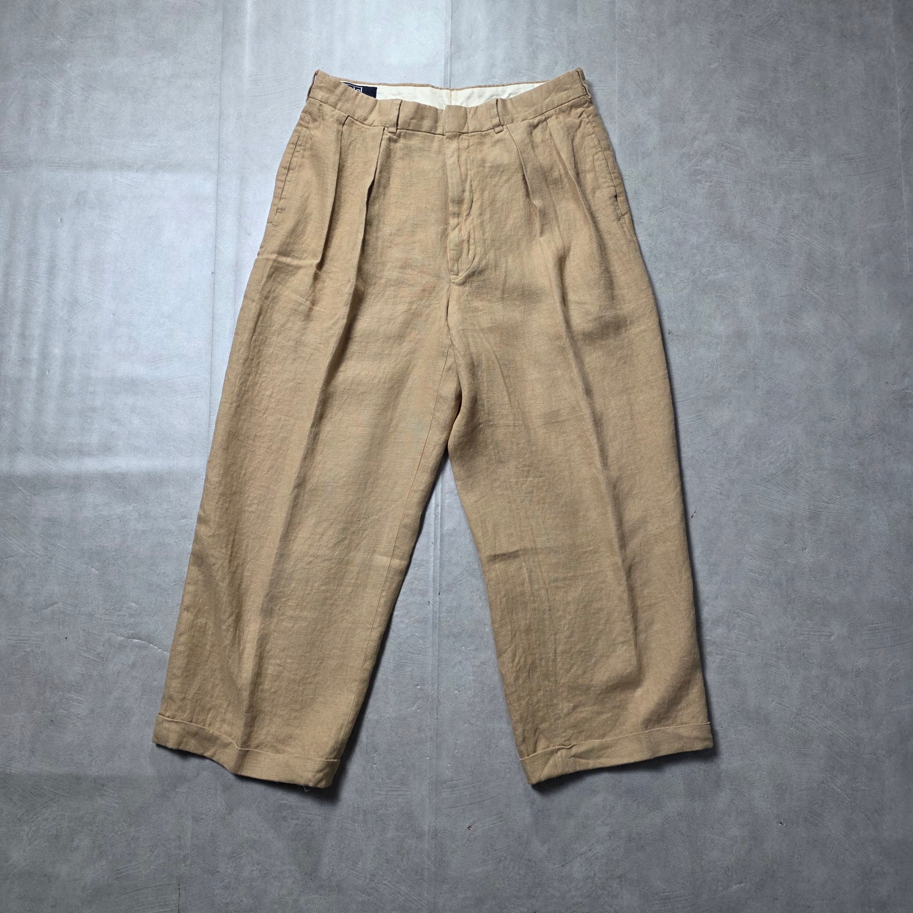 1980s Vintage Polo By Ralph Lauren 2tuck Linen Trousers Made in USA W30 L25相当