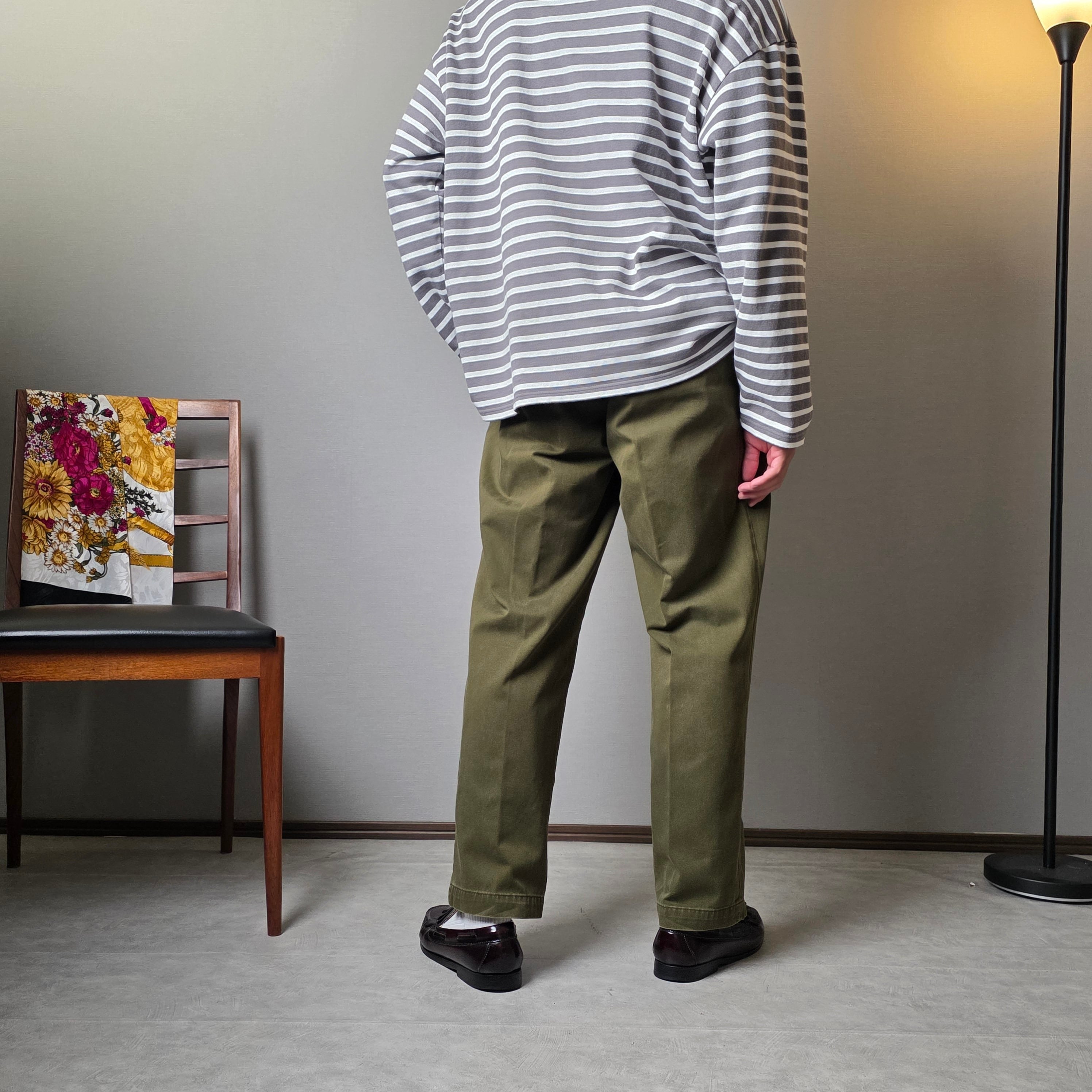 ノータックのシンプルなディテールながら、ゆとりのあるヒップ回りから裾にかけてのテーパードがとても綺麗な1本。